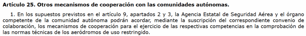 Lo cierto es que hay lío con las autorizaciones de aeródromos aunque está en vías de solución. Parece ser que las competencias de las autorizaciones tienen que ser de las CCAA tengan o no tengan transferidas las competencias. El artículo 70 del Estatuto de Autonomía de Castilla y Leon determina que tiene competencia exclusiva en materia de “aeropuertos, helipuertos, (…) que no desarrollen actividades comerciales.”