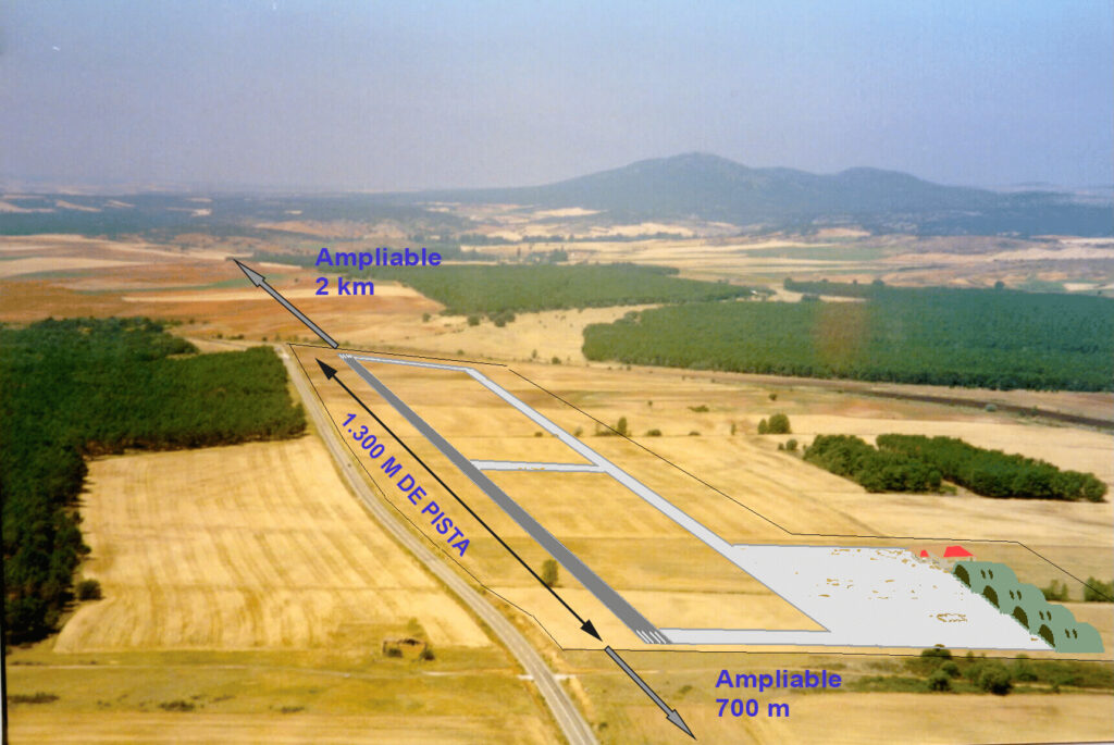 Por deferencia hacia él, fui a ver los terrenos, esperando que sería muy difícil que se pudiera desarrollar un aeródromo. Pero cual fue mi sorpresa cuando resulta que había unos terrenos municipales donde se podía instalar una pista de hasta 1300 m (como la actual de Garray) en terrenos municipales, sin cables, al lado de la carretera y del tren, alejado de la localidad, etc. Y estudié el proyecto.