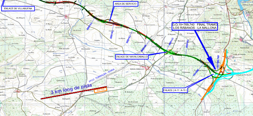 Con la misma orientación que Garray y sin sobrevolar ninguna población ya que queda a 2 km de Navalcaballo, por lo que hubiera sido totalmente operativa. Por otro lado, se quedaba ubicada al lado del polígono industrial de Navalcaballo, futura autopista de circunvalación de Soria y la vía del tren, es decir, perfectamente conectado el aeródromo por carretera y tren.